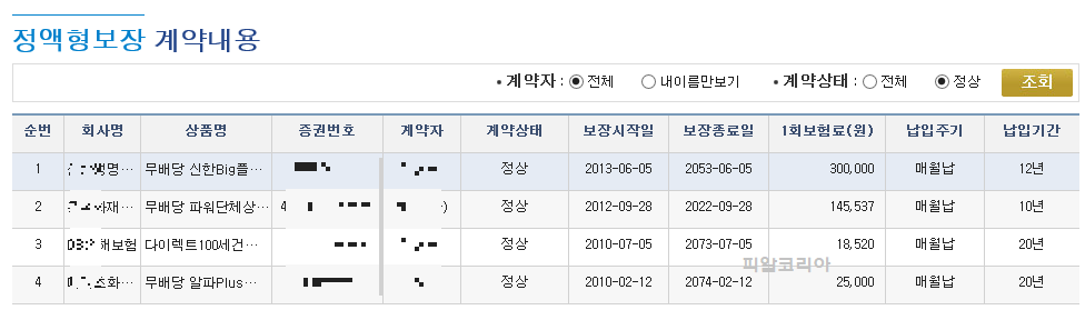 즉, 2006년 이전에 가입했던 오래 유지되고 있는 계약은 나오지 않으니, 오해 없으셨으면 합니다.