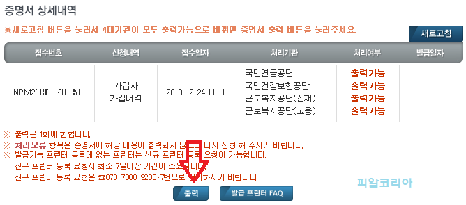 저도 이번에 관련 서류를 내야 할 곳이 있어, 회사에 요청하지 않고 쉽게 출력을 하여 제출을 했답니다.