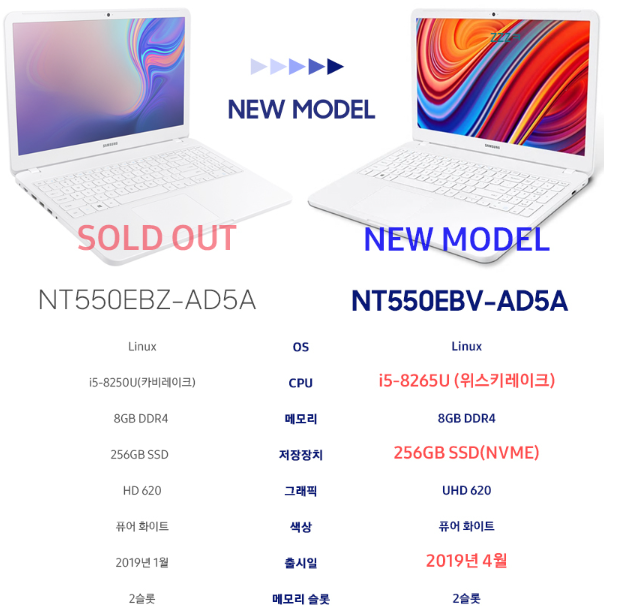 기본 모델은 NT550EBZ이지만, 현재 단종이 되어 업그레이드된 NT550EBV-AD5A로 받을 수 있습니다.
