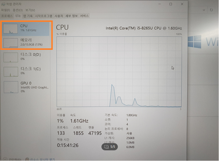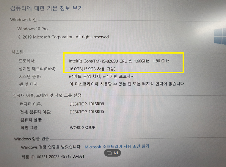달라진, 사양은 CPU가 기존 i5-8250U에서 i5-8265U로 업그레이드되었고, SSD도 NVME 타입으로 변경된 것을 알 수 있습니다.