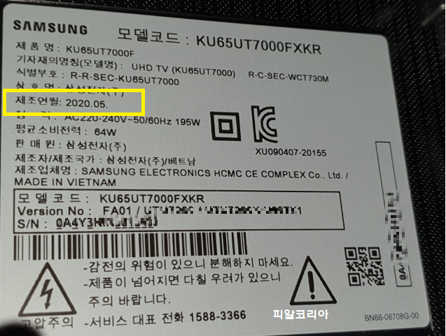 기존 TV에 비해서 크기는 물론, 화질도 좋아 다른 사람들의 구입 후기를 읽던 중, 1등급 가전제품의 경우 정부에서 구입 비용의 10%를 돌려주는 환급제도를 시행하고 있다는 내용을 보고, 제품 뒷면을 보니 헙! 1등급 확인 완료.
