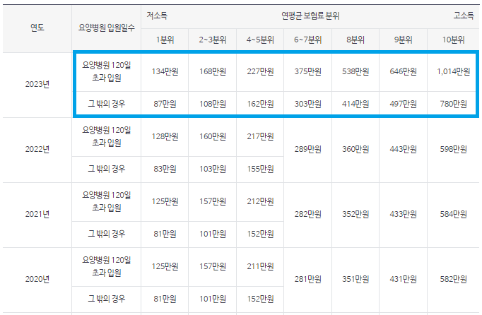 위 표를 보시면 저소득 1분위부터 고소득 10분위까지 연평균 보험료 분위를 확인할 수 있습니다.