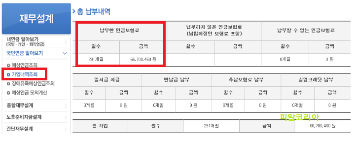 저는 지금까지 총 291개월에 약 6,600만 원 정도를 납부한 것을 쉽게 알 수 있었습니다. 그리고, 꼭 알고 계셔야 하는 중요한 점이 있습니다.