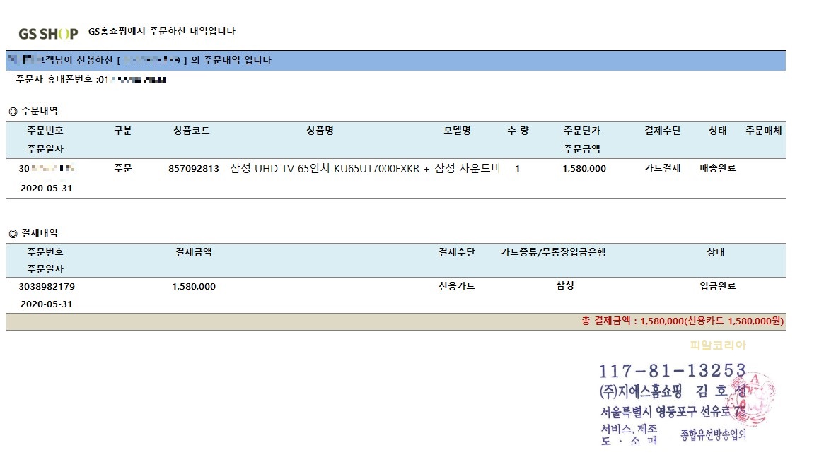 영수증의 경우 거래 사이트에서 출력이 가능하며 위와 같이 공급자의 정보, 가맹점 정보가 나와 있어야 합니다.