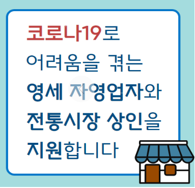 그리고, 최근 코로나 19로 인해 어려움을 겪는 영세 자영업자와 전통시장 상인을 위해 특별자금과 영세 자영업자 지원 사업이 있어 알려드리도록 하겠습니다.