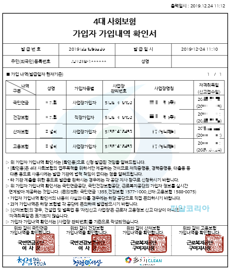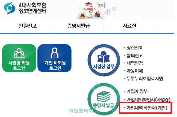 개인 4대보험 가입증명서 인터넷 발급방법