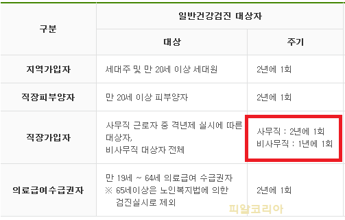 직장가입자는 사무직은 2년에 1회, 비사무직은 1년에 1회 받게 됩니다.
