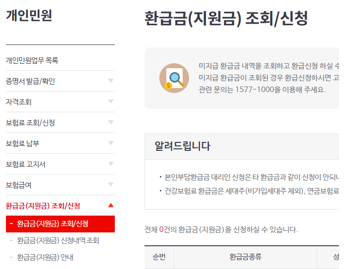 환급금 대상금액이 조회되는 경우 "신청하기" 버튼을 통해 신청도 가능합니다. 보건복지부에서도 이 매년 이 제도를 통해 소득 재분배 효과가 크고, 저소득층 등 사회적 약자 복지를 위해 역할을 지속적으로 노력하고 있다고 하니, 모두들 조회해 보신 후, 혜택을 받아가셨으면 좋겠습니다.