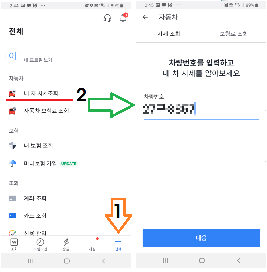 이어서, 본인의 차량번호를 입력한 후 "다음"을 클릭합니다. 차량번호만 적으면 되어서 굉장히 편리합니다.